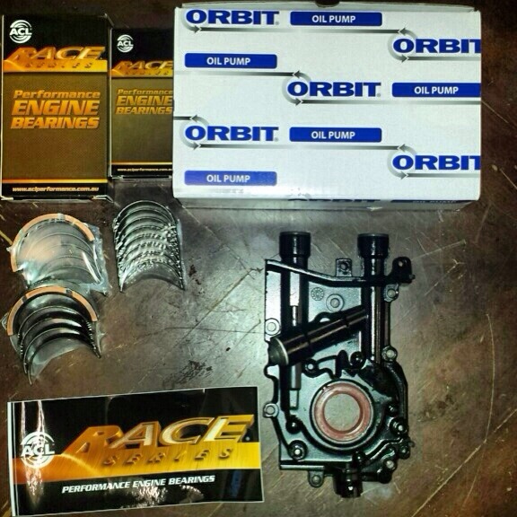 Here is the fine work from Eddings Machine Shop and SoCal Porting as well as products from Supertech Performance, GSC Power Division, ACL Race Bearings, Scat Crankshafts and JE Pistons. The motor is back and ready to be assembled with all it’s fresh new goodies. Also pictured is some important pieces in the oiling system including the Killer B Motorsports oil pan, pickup tube and tray. As well as a new oil pump from Orbits and a good old Accusump.