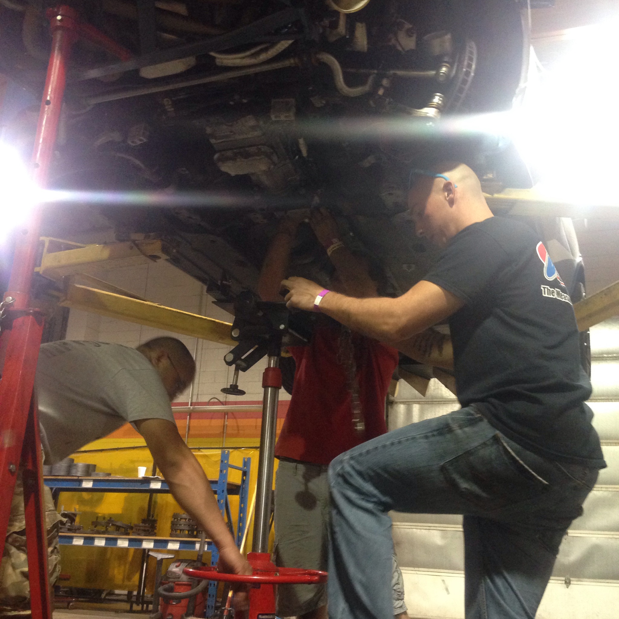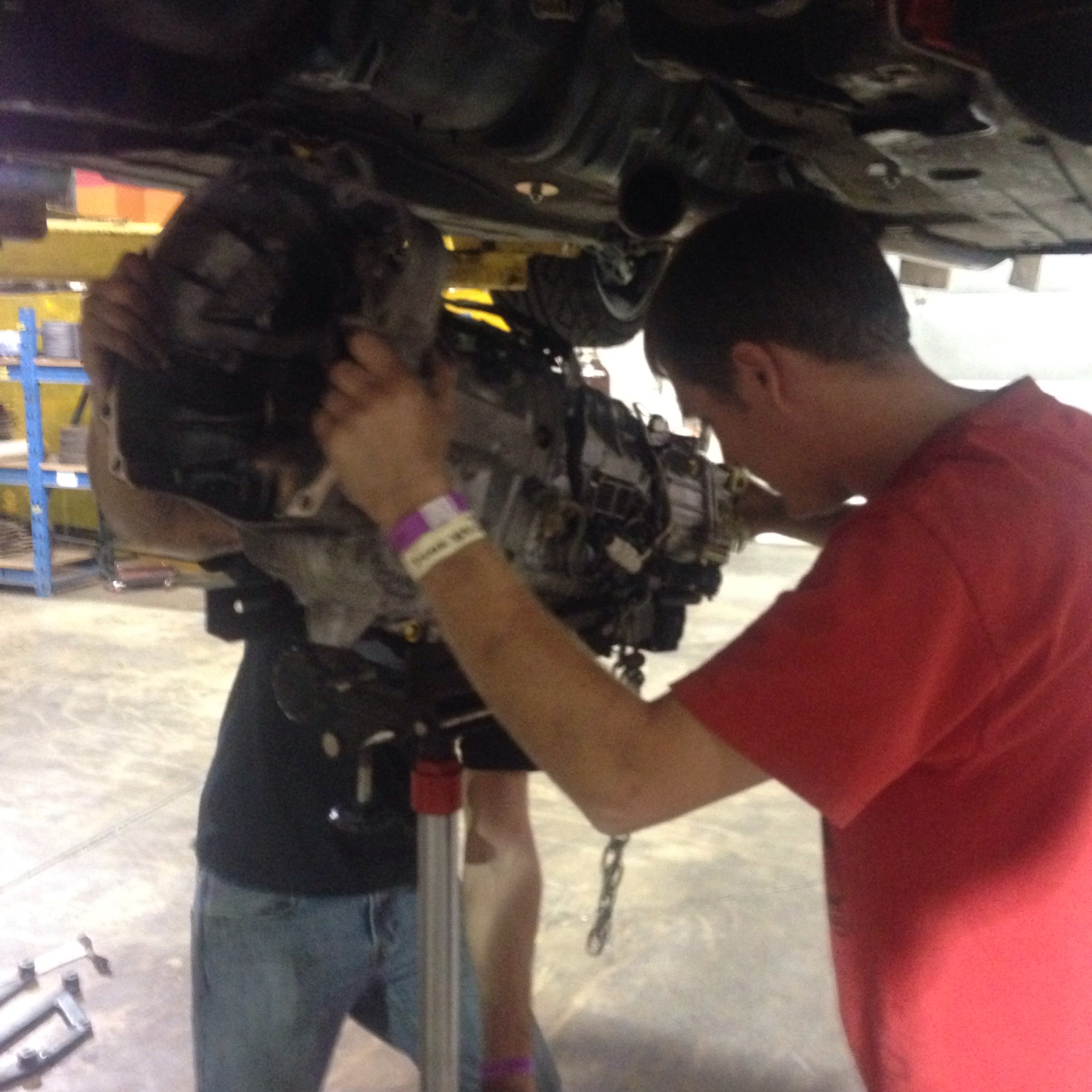 Now here is where it gets a bit more interesting, we were expecting to see a worn out clutch and instead we find that the rear main seal was leaking oil onto our current clutch causing the slippage. So now being all sorts of hours of the night we had to figure out a source for a new rear main seal, so I hit the road luckily for us crewman Aaron Gillis is in the middle of his own engine rebuild and just happen to get in his master gasket kit just this week. So the Panda and I went for a road trip to get the seal and an hour or so later we returned with the part in hand, now while we were off screwing around Paul Leung, Gil Martin and Ken Kasitz were doing the hard to work. They got the transmission out and once we returned got the new seal in and then got it all buttoned back up again! I cannot thank every single one of them enough for their hard work and dedication to the program, it is unparalleled I even am amazed at their willingness to do whatever that is needed to accomplish the task. It is truly a testament to the type of people that I am glad to surround myself with, I am lucky to call them friends, crew, and family.