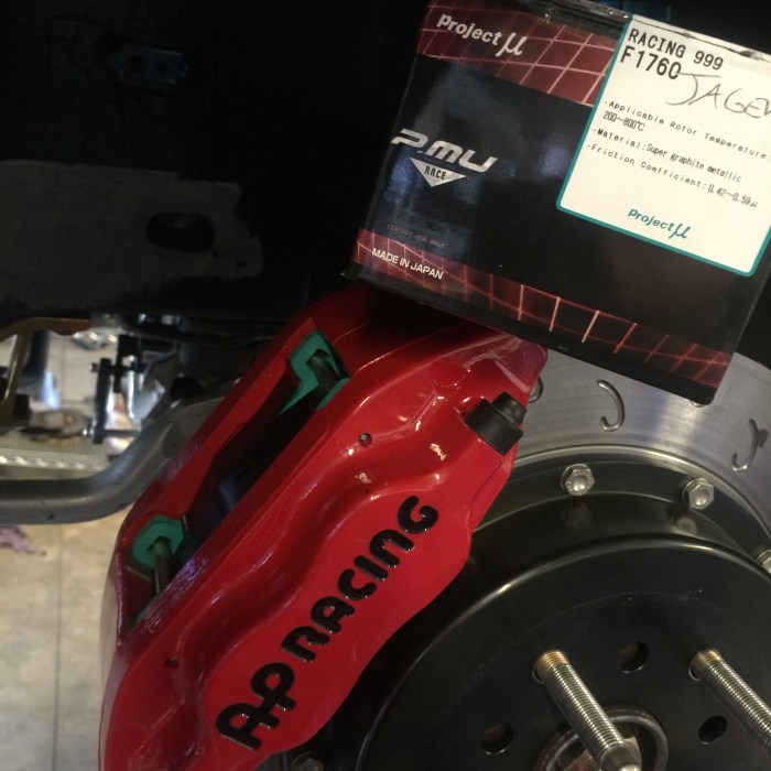 Additionally the decision was made to complete the AP Racing BBK and get the rears to compliment the fronts and really allow the car to be stopped in a big hurry. After having the fronts installed for all of the 2014 season I was more than willing to fork out the cash on these. This is one modification I really wish I could go back in time and do much earlier being the amount of confidence that it allowed me to have in the car. Along with the BBK it is very important to select the correct pad for your style of driving. I use Project Mu racing pads and I could not be happier with their performance. The 999 pads have exceeded my expectations without a doubt. They have an amazing ability to have a great initial bite and not fade like other pads tend to do. Beyond that they also are able to withstand a huge amount of abuse and keep on lasting.