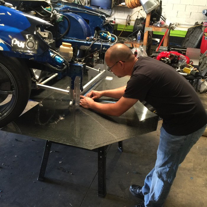 Of course Paul was then set to the task of securing the new massive splitter to the car while attempting to keep the structure as light as possible.