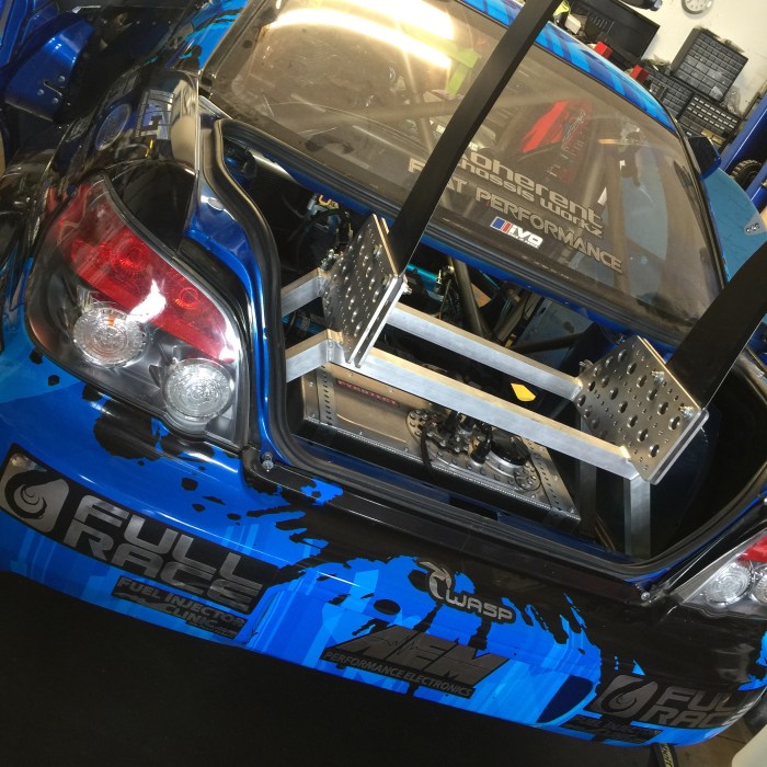 Since Global Time Attack Super Lap Battle ended in November of 2015 we had a new motor to build and improvements to make. First we found that our APR GT-1000 wing has a bit more effect than our old GT-250, so we had to reinforce our wing mount to withstand the forces produced.