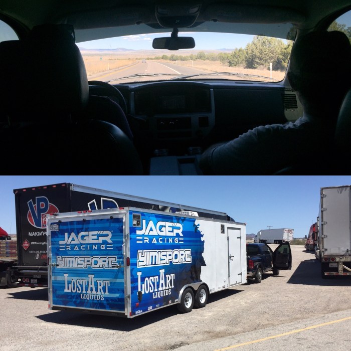 We weren’t allowed into the facility but that didn’t stop us from pulling the car off the trailer in the parking lot and working on it there. Now remember this is after we drove nonstop from California, so everyone was definitely lacking sleep. Once the gates finally opened we then drove it into the facility and began to set up our pit area and finish up what needed to be accomplished. We then had a day of testing ahead of us and you could imagine the excitement on everyone’s tired faces…