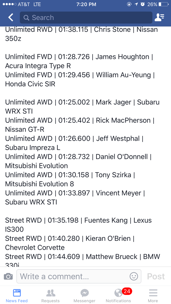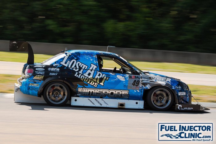 The first day of competition saw its fair share of ups and downs with 2 cars being put out of competition due to incidents that occurred on track. But we were steadily able to improve our times throughout the day utilizing our data provided by ou AEM AQ-1 that Rami was able to extrapolated valuable time out of the car. We made some slight damper changes on our Fortune Auto coilovers and headed back out but this time on our big boy map which turned up the boost on our Borgwarner 9174 turbo netting us north of 700whp.