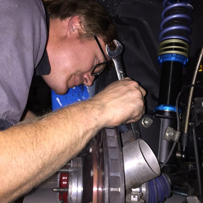 So the guys setup the car for one last push! A light brake bleed with some Project Mu fluid and a data download from our AEM Electronics AQ-1 data loggers to go over some parameters. From the data we were able to see how well our Outfront Motorsports Closed deck was performing and see where I could make some improvements.
