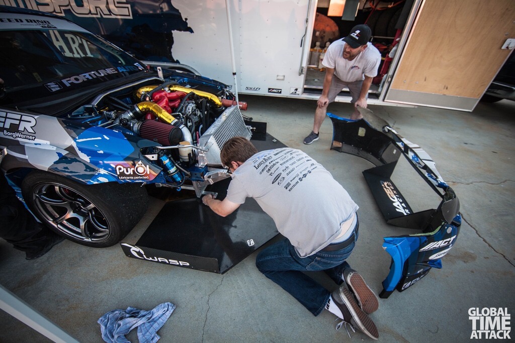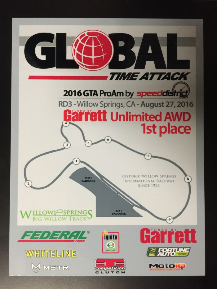 Just 6 short days after The Speed Ring event we had Global Time Attack Pro Am at Willow Springs International Raceway. This being our home track was definitely beneficial although as the car performed so well at the previous event all we did was pack it into the trailer and then unpack it at Willow Springs minus a quick suspension setup change and a new CV boot on a rear axle.