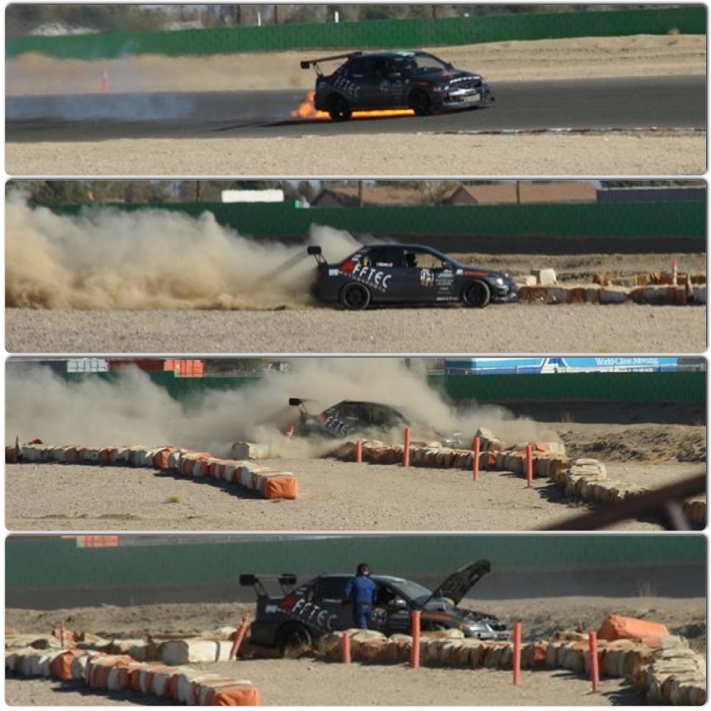 ZC: My #1 scariest moment would have to be blowing my engine entering Turn 9 at Willow Springs International Raceway at round 7 at Redline Time Attack. I was going around 110-120mph when the bearing seized/and rod let go out the bottom of the oil pan. I Instantly got 40deg sideways from the oil dumping in front of my tires. At the same time, I could see flames coming out from under the hood from behind and from the vent. I knew it had to be oil touching hot parts in the engine, making it an oil fire. I was counter-steering for a good 3 full seconds trying to get it to go straight and not go off sideways.